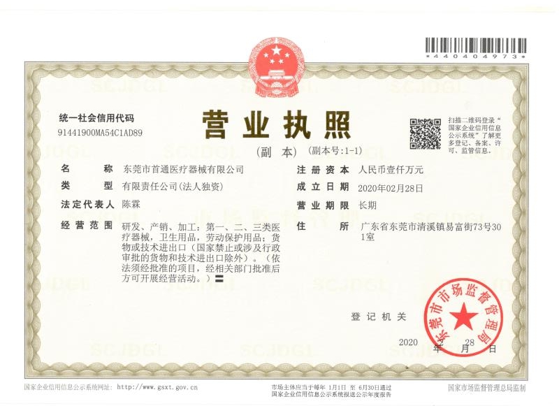 据介绍,东莞首通医疗器械公司是一家医疗器械产品研发、设计、制造、销售、服务并提供产品解决方案为一体的综合性技术企业,主要生产第一、二、三类医疗器械,包括一次性平面口罩,一次性医用平面口罩、医用N95折叠式口罩、卫生用品、劳动保护用品等,公司拥有职工100多人,一次性医用平面口罩年生产产能可达到上亿只。
